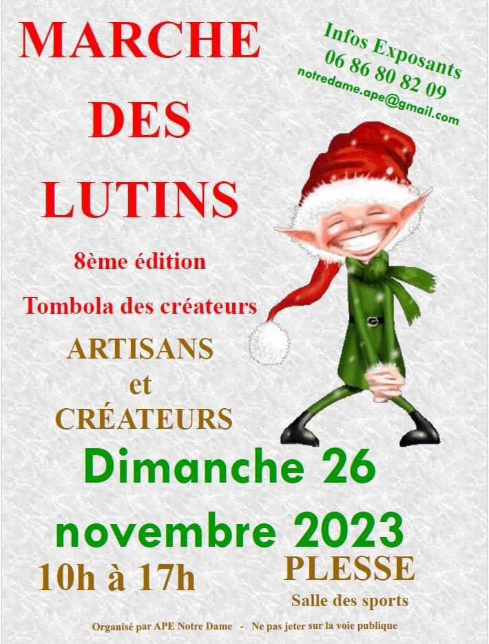Enfin le dimanche 26 novembre, je serais en compagnie de deux ou trois autres auteurs au marché de Noël de Plessé, « Le Marché des Lutins »